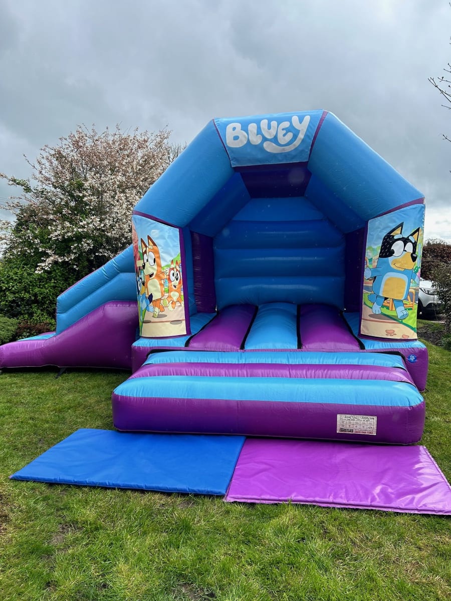 Bring Bluey’s backyard adventures to your next party with the 19ftx14ftx10.5ft (L/W/H) BLUEY COMBI SLIDE CASTLE — a colourful, action-packed jumper perfect for kids who love sliding, bouncing and squealing with delight. This combi slide castle combines a roomy bouncy area with a fun slide for double the entertainment. ๐๐จ๐ฉ๐ง๐ฆ
